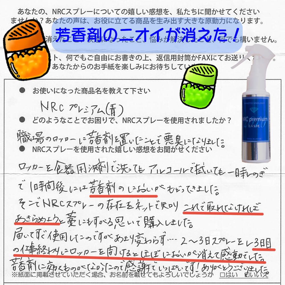 今回は、職場のロッカーについた芳香剤にNRCプレミアム ベーシックを使用した方からの嬉しいご感想の紹介です。