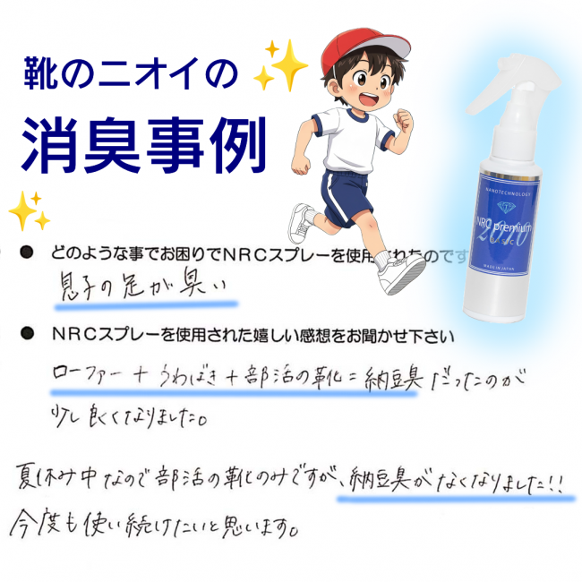 「部活シューズが納豆みたいな臭さだったのに、スプレーしたら全然気にならなくなった!」