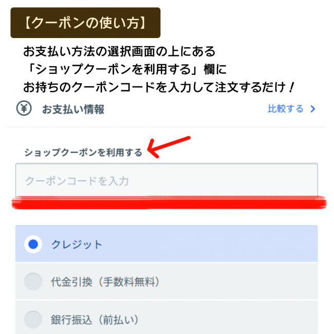 「ショップクーポンを利用する」入力欄にクーポンコードをご入力のうえ、