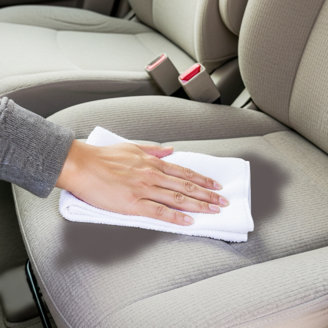 シートの素材に合う中性洗剤を薄め、汚れた部分をやさしく洗います。