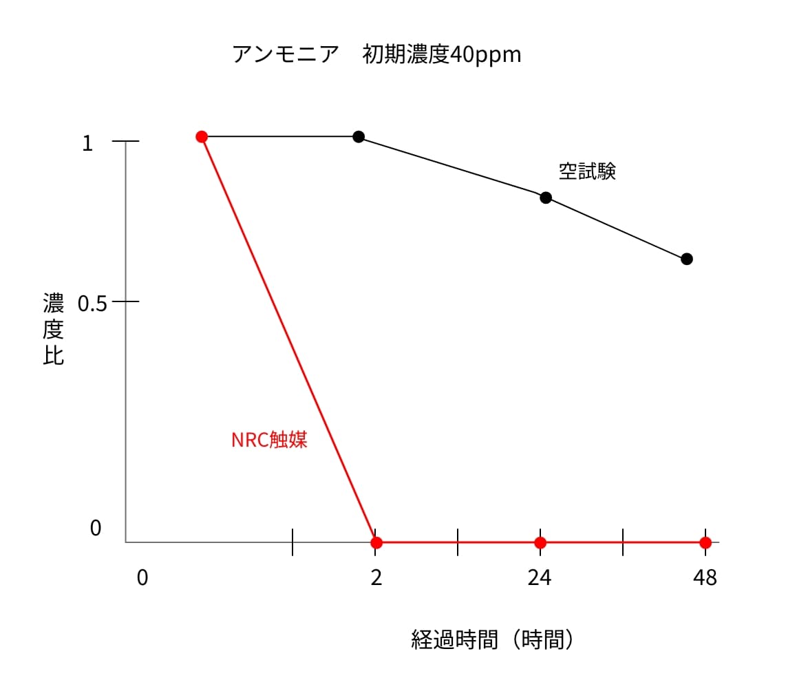アンモニア臭を発生させた密閉試験環境を用意し、