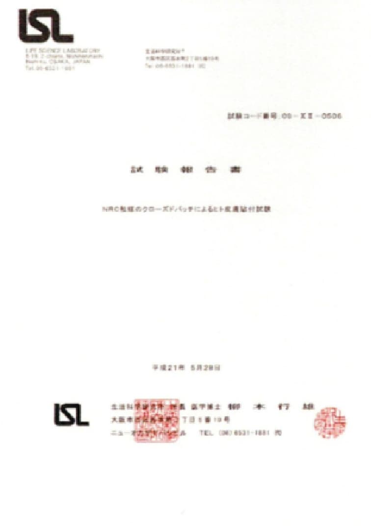 皮膚感作性(アレルギー反応が出ないか)などの